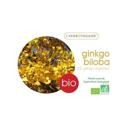 L'HERBITHICAIRE Ginkgo Biloba Bio un complément alimentaire, sous forme de gélules végétales, formulé à lextrait de Ginkgo Biloba. Le ginkgo biloba surnommé larbre aux quarante écus est aussi appelé arbre sacré d'Orient. Les vertus de la feuille, riche en flavonoïdes, sont connues de par le monde.
