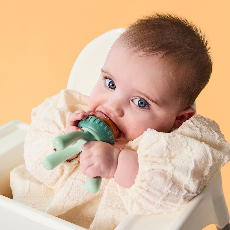 La grignoteuse en silicone réinventée avec design de trépied unique ! A partir de 4 mois.