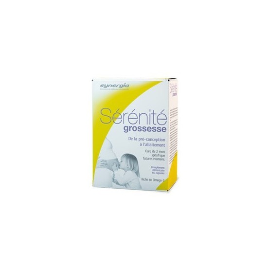 Sérénité Grossesse 60 capsules de Synergia est un complément alimentaire pour la femme de la préconception à l’allaitement.