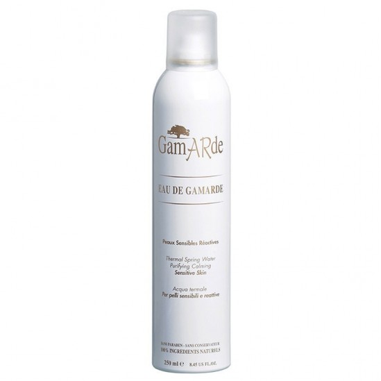 Eau de Gamarde-les-Bains (100%) : riche en éléments soufrés, apaisante, purifiante, anti-irritante et anti-radicaux libres.