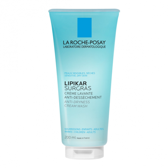 La crème lavante Lipikar surgras de La Roche-Posay surgras nettoie en douceur les peaux sensibles et sèches du nourrisson à l'adulte sans les dessécher.