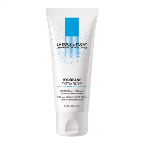 La crème hydratante visage essentielle Hydreane Extra-Riche imprègne, jour après jour, la peau sensible en Eau Thermale de La Roche-Posay. La crème hydratante visage Hydreane Extra-Riche de La Roche-Posay apaise et adoucit la peau.