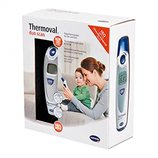 Thermoval Duo Scan est un thermomètre pour les bébés, les enfants et les adultes également, qui vous propose deux méthodes de mesure (mesure auriculaire et mesure frontale).